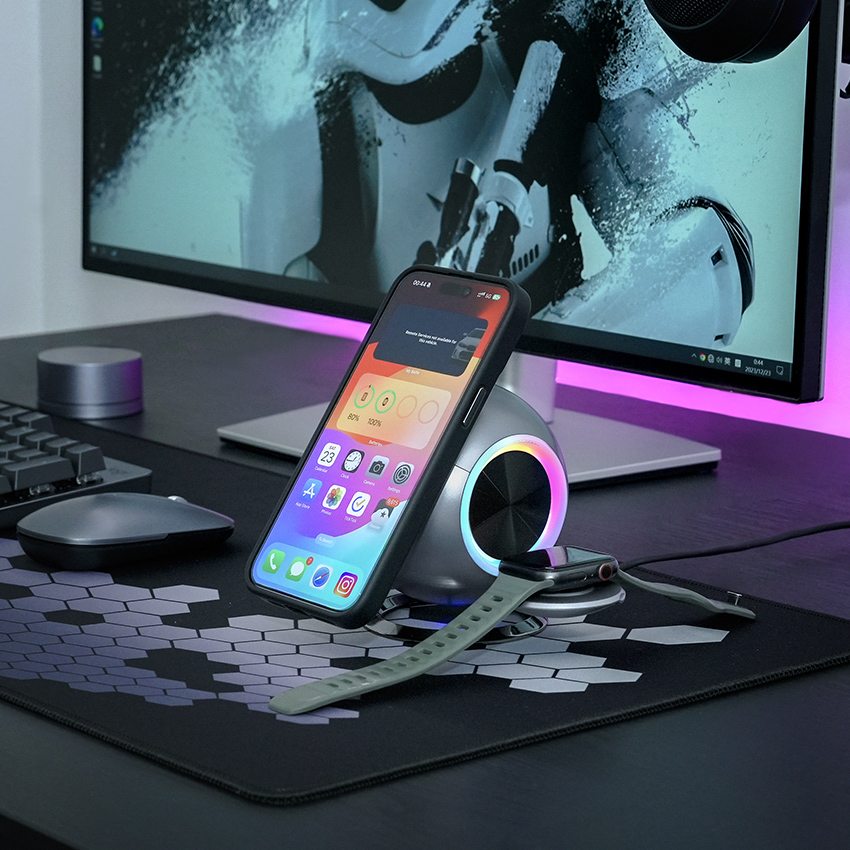 Featuring a creative foldable space-capsule design, HALO I delivers X2 faster charging with 15W fast charge for iPhone 15 and full Qi2 support. Enjoy a 50% stronger magnetic hold, 7-mode color LED ambiance lighting, and comprehensive safety protection